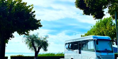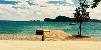 Camping am Gardasee in der Nähe der Anlegestelle der öffentlichen Boote, Öffentliche Boote - Bootsfahrt auf dem Gardasee